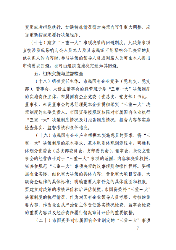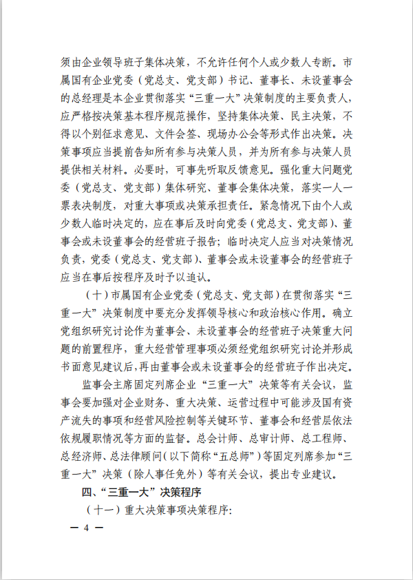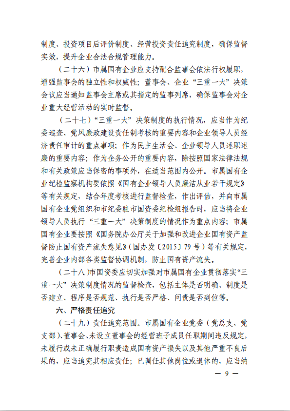 關于進一步規(guī)范市屬國有企業(yè)貫徹落實“三重一大”決策制度實施意見(國資黨委[2020]21號)
